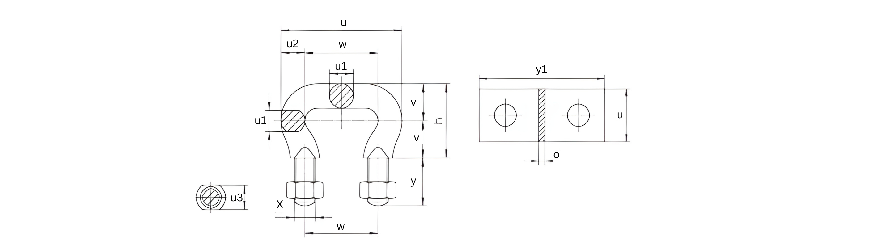 w (mm) | v (mm) | u (mm) | u1 (mm) | u2 (mm) | u4 (mm) | X | h (mm) | y (mm) | Distance y1 (mm) | u (mm) | o (mm) |