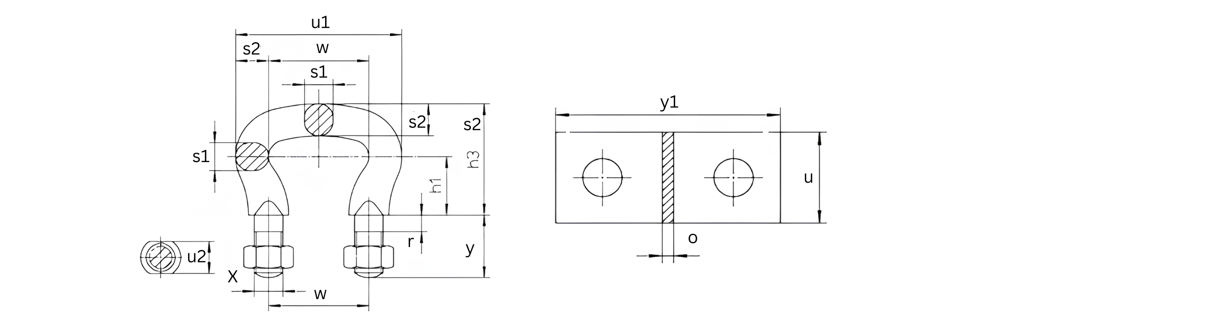 w (mm) | r (mm) | u1 (mm) | u2 (mm) | s1 (mm) | s2 (mm) | X | h1 (mm) | h3 (mm) | y (mm) | Distance Plate y1 (mm) | Distance Plate u (mm) | Distance Plate o (mm) |