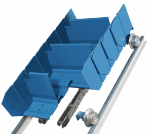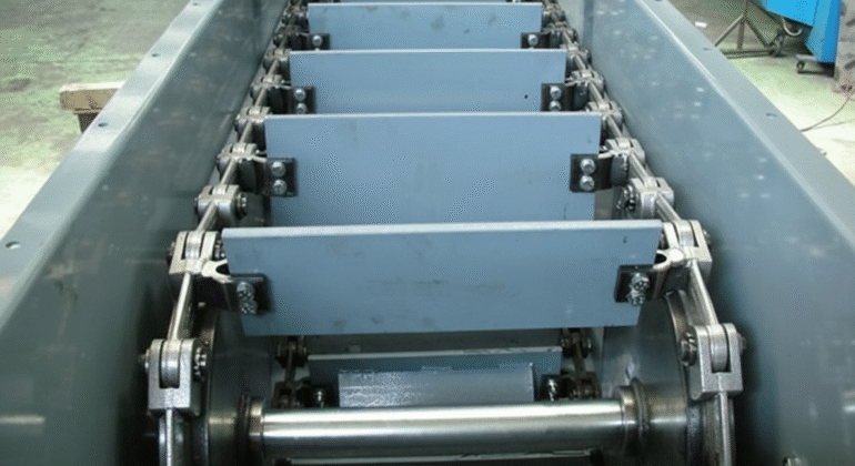 Flow conveyor chains are tailored for horizontal or low-angle conveying of powdered and granular materials — especially in cement kilns, fly ash systems, and additive dosing lines. These chains provide controlled flow with reduced wear and noise.
